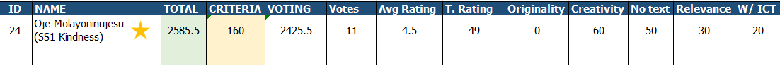 Oje Molayoninujesu (SS1 Kindness) was the sole entry in senior category, with 2585.5 points.